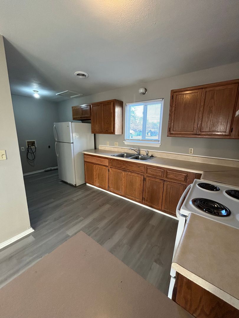 Welcome to your new home in Pittsburg, KS! This attractive 2-bedroom apartment, conveniently located within walking distance to PSU, offers a blend of comfort and style. The apartment features 1.5 bathrooms, providing ample space for your daily routines. The interior has been freshly painted, giving it a clean and modern look. The entire apartment boasts brand new hardwood floors, adding a touch of elegance and easy maintenance. For your convenience, the apartment is equipped with washer and dryer hookups, making laundry day a breeze. With its great location and appealing features, this apartment is a perfect place to call home. Come and experience the comfort and convenience of living in our Nice 2 bedroom 1 bath Apt. in a great location!