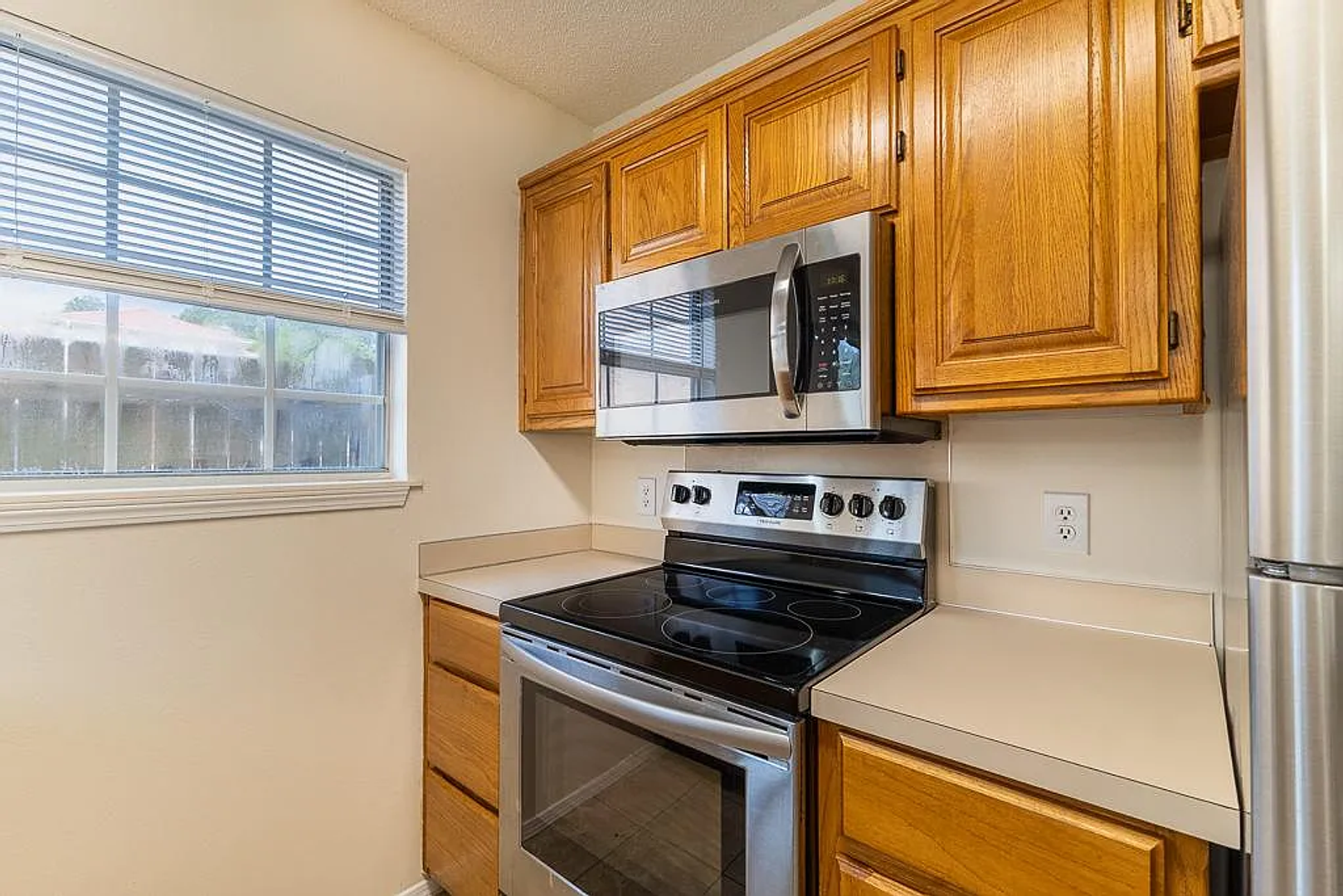 Step into this beautifully designed 2 bedroom, 1.5 bath townhome, ideally situated in Bentonville, AR. The open-concept kitchen, which leads directly into the living area, is perfect for entertaining guests and comes fully equipped with a fridge, stove, and microwave. Relish meals and social moments at the convenient eat-in bar area.